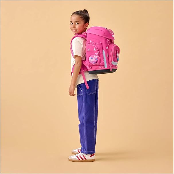 - Set da 5 pezzi: zaino ergonomico per la scuola, dimensioni: 28 x 40 x 25 cm (larghezza x altezza x profondità), sacca sportiva, 5 cletties, 22 pezzi. Astuccio pieno e astuccio. Prodotto responsabilmente da 27,7 bottiglie PET riciclate.