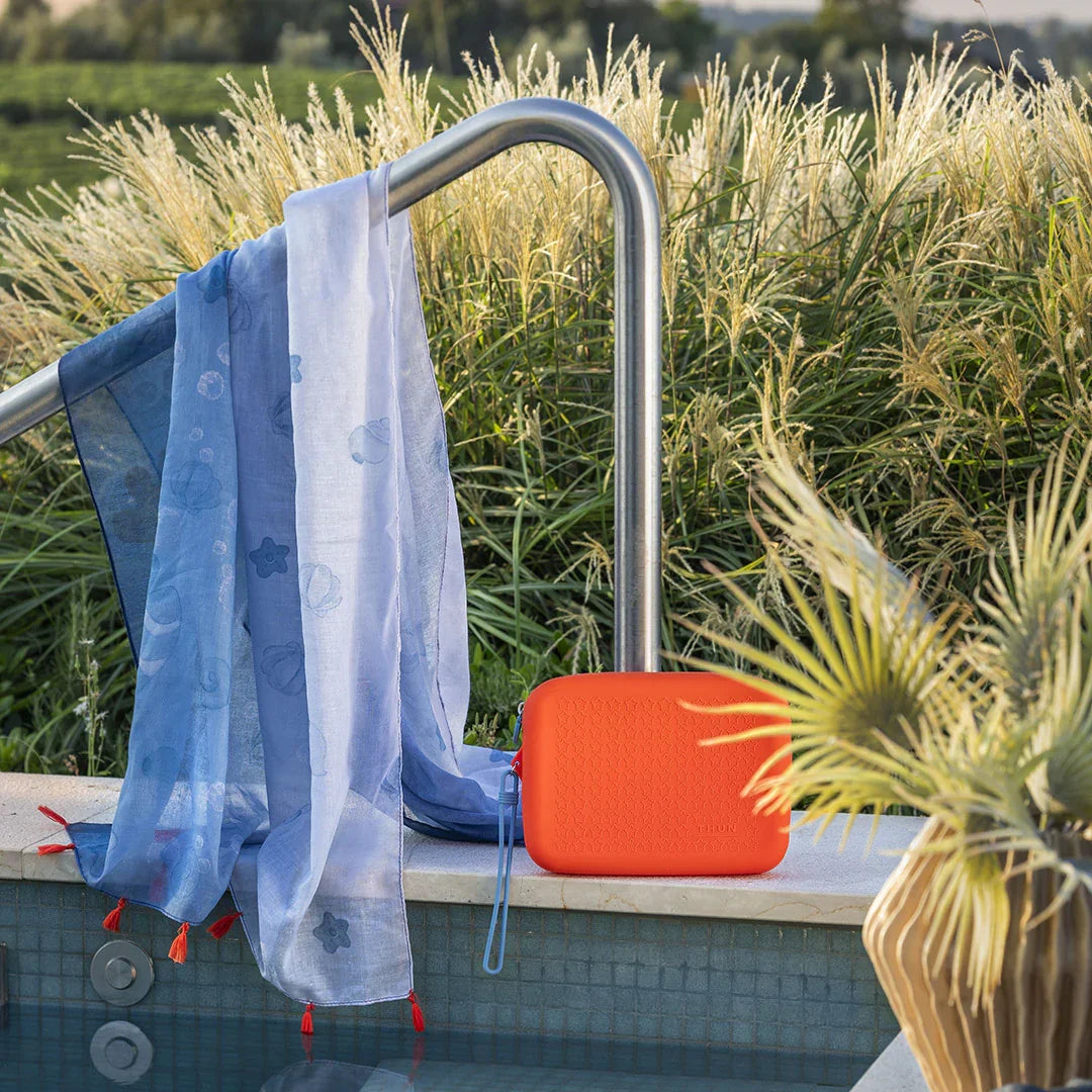 Esalta la tua estate con il pareo Orange/Light Blue Thun con pochette abbinata. Elegante e pratico, questo set è perfetto per chi cerca un look raffinato e versatile in spiaggia o piscina. Acquistalo ora e vivi con stile ogni momento di relax!