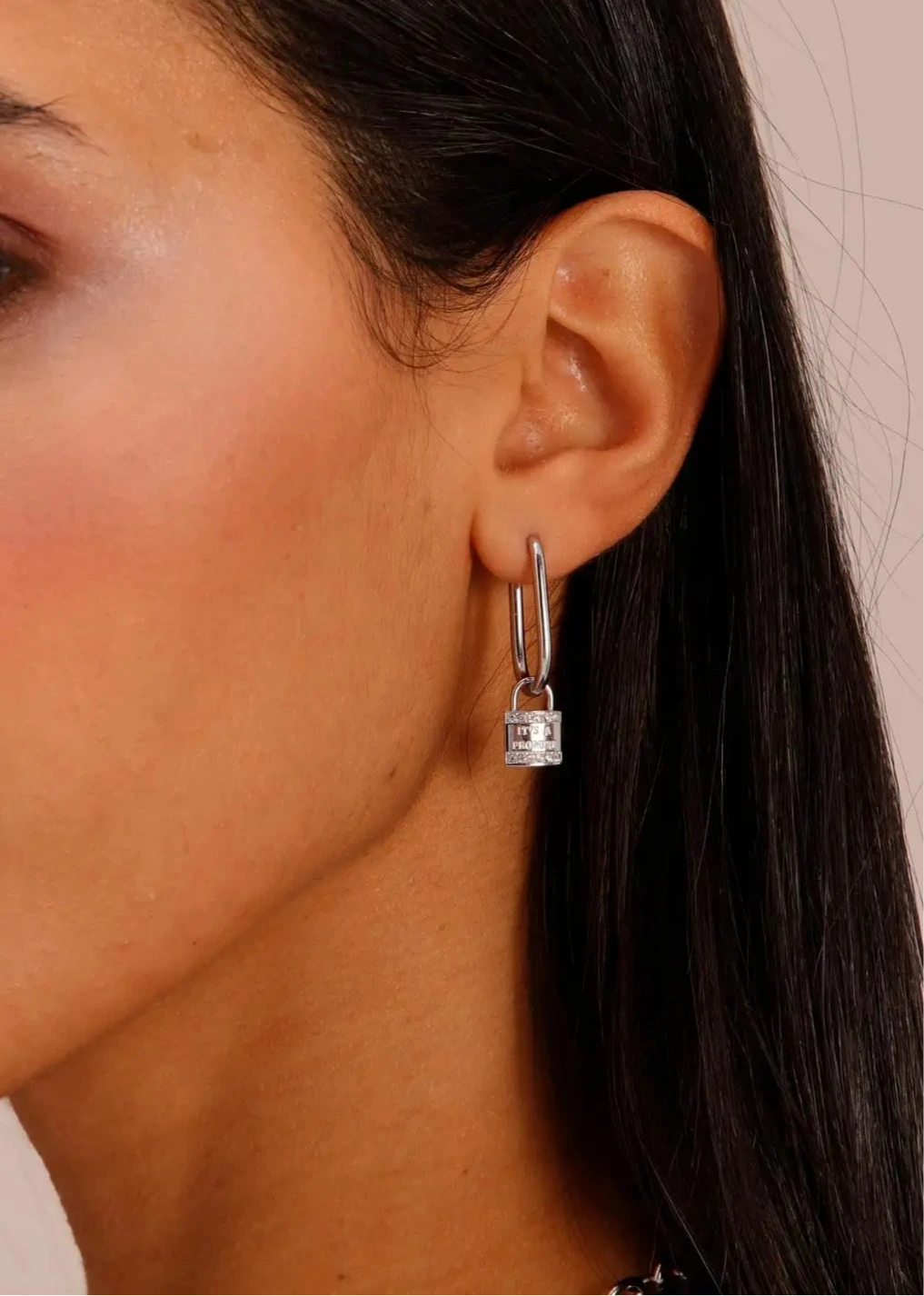 • Orecchino singolo rettangolare in acciaio 316L e pendente a forma di lucchetto con incisione e cristalli. Scegli i gioielli Brosway ed esprimi il tuo stile e la tua personalità in tutte le occasioni