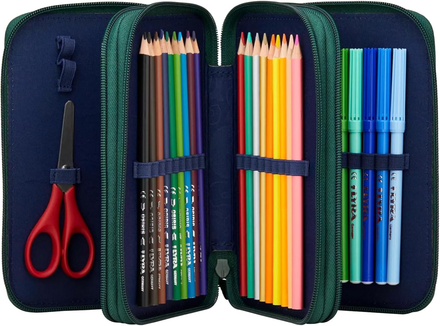 - Completamente attrezzato: gli astucci sono 40 pezzi. Riempito tra l'altro con 18 matite colorate e 18 pennarelli Lyra. Tutto per gli scolari è ben organizzato nell'astuccio.