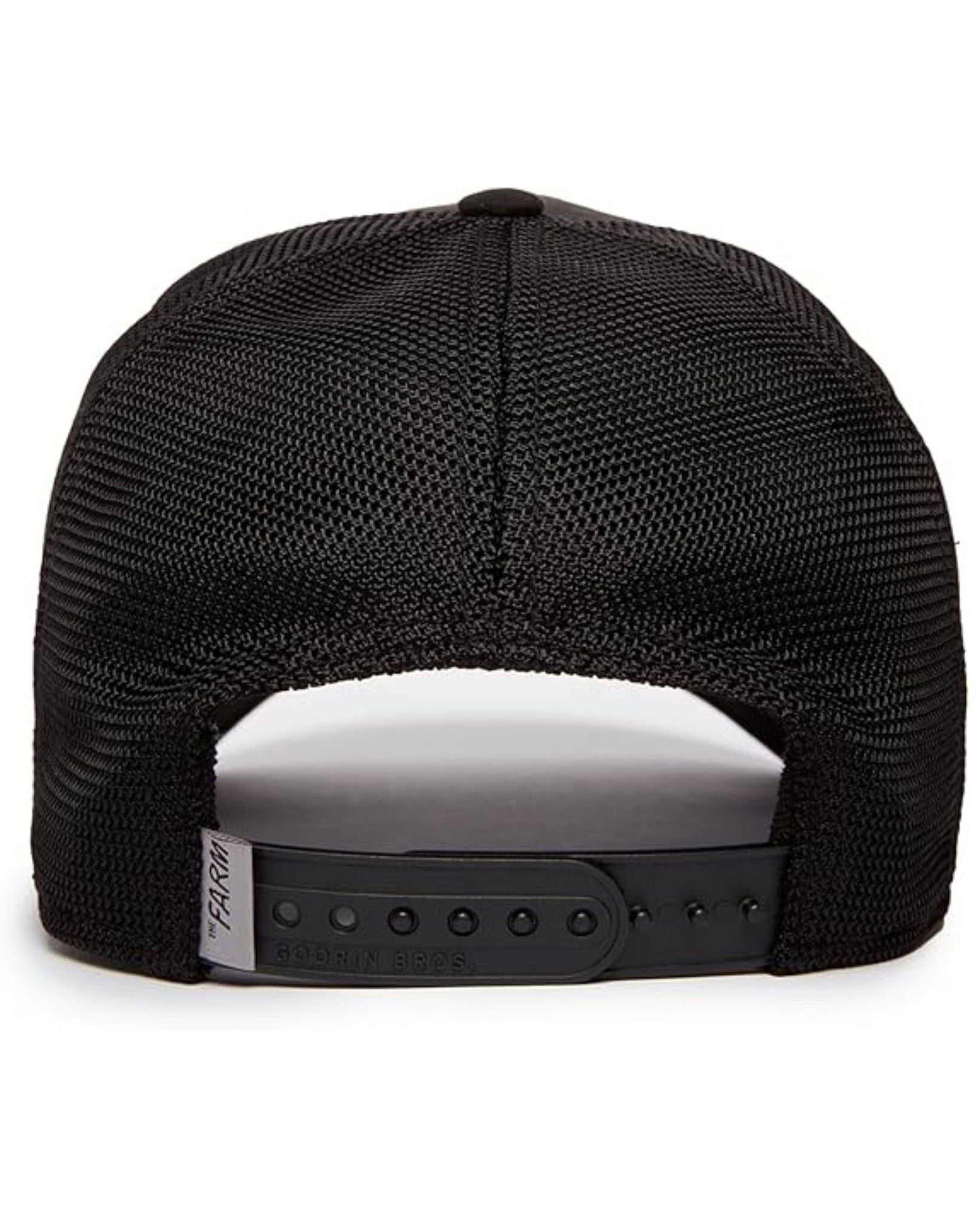 Classico cappellino trucker a marchio Goorin Bros., edizione 'Black Suede' con pannello principale e visiera con rivestimento esterno in effetto pelle scamosciata, retro forato per facilitare la traspirabilità, snapback regolabile a 7 livelli.