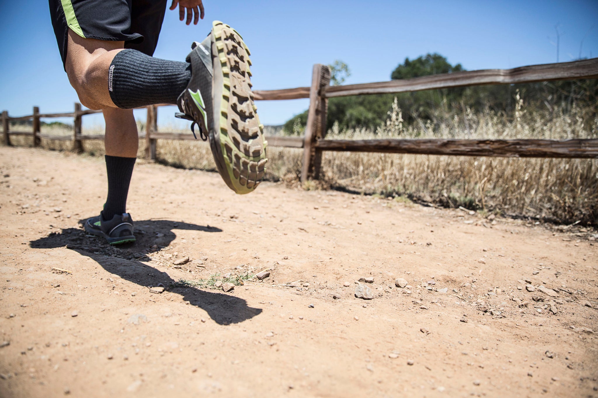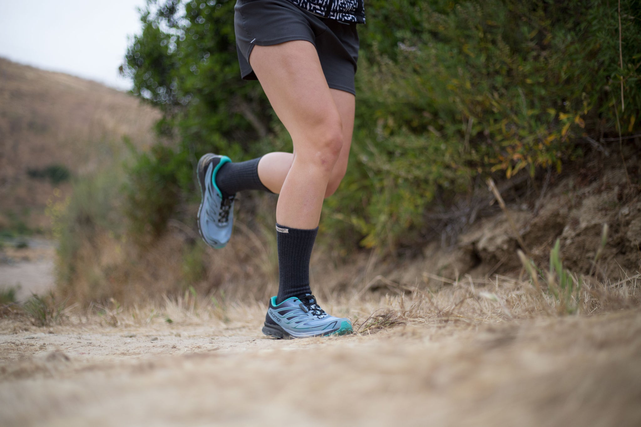 Protezione dai detriti: L'altezza "crew" e il doppio polsino elastico impediscono a fango, sabbia e sassolini di entrare nelle calze durante la corsa o l'escursionismo.