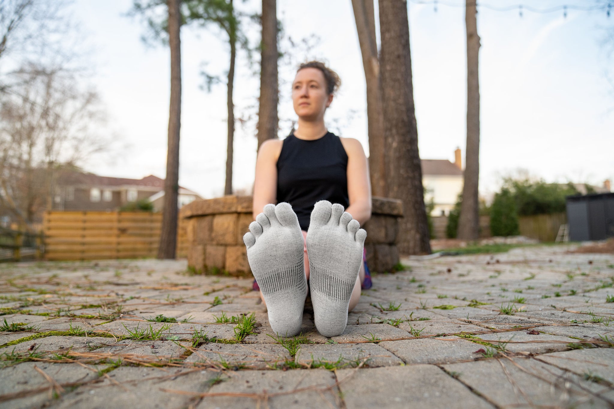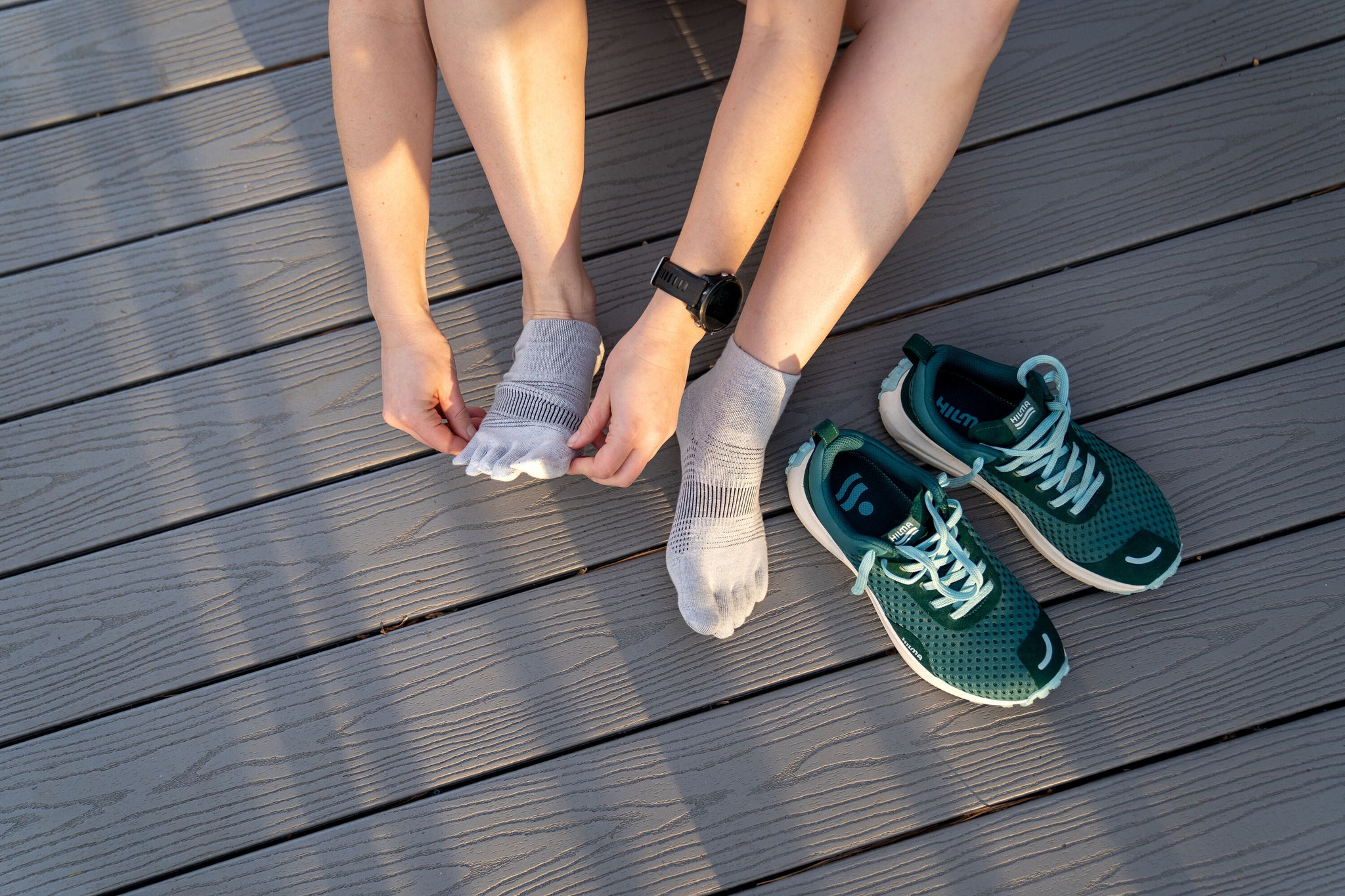 Design a cinque dita: Ogni dito è avvolto individualmente dal tessuto, prevenendo l'attrito tra le dita che causa le vesciche, soprattutto durante la corsa.