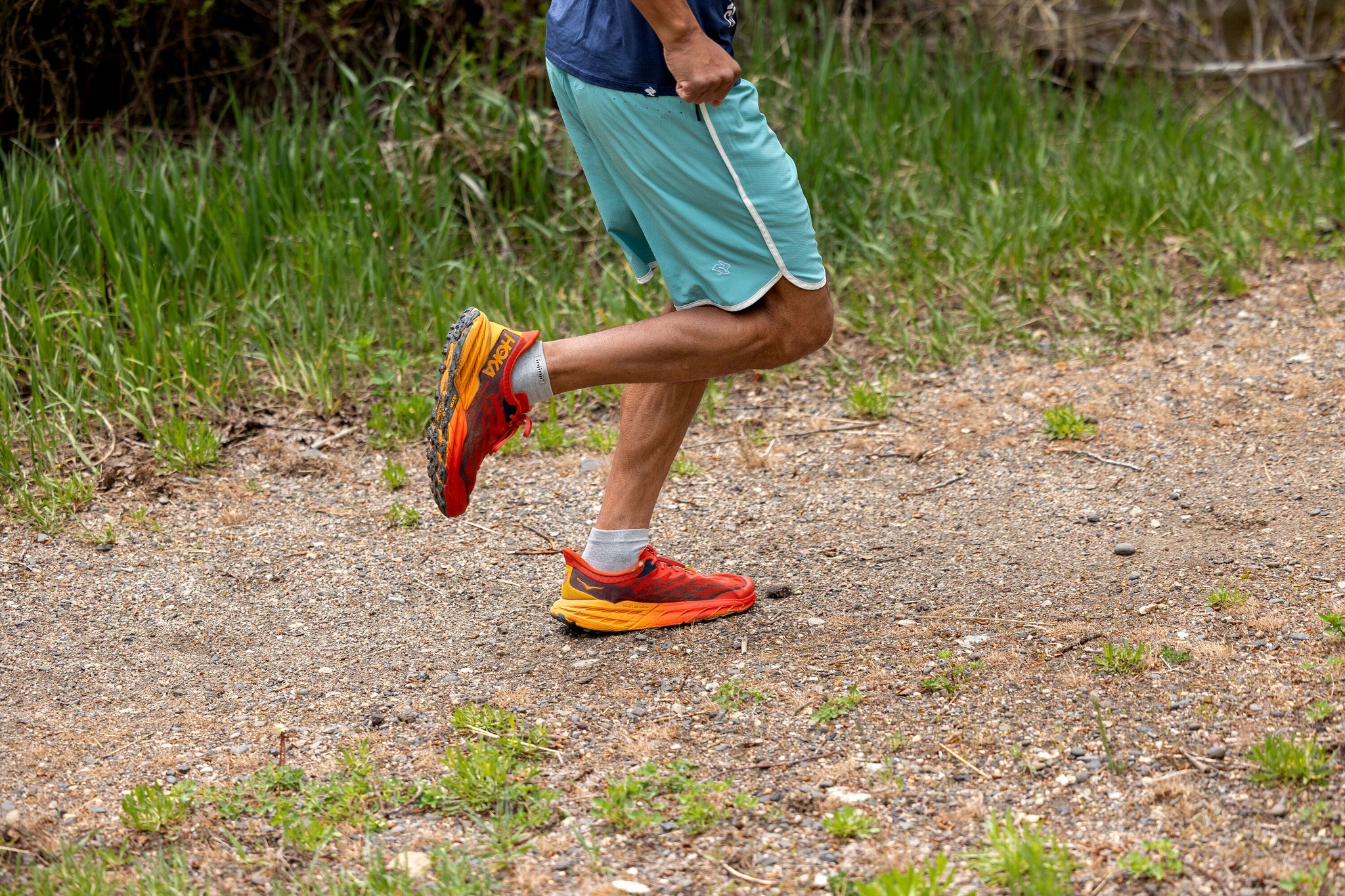 Altezza Mini-Crew: L'altezza si posiziona appena sopra la caviglia e include una linguetta posteriore per proteggere il tendine d'Achille da sfregamenti e per evitare che la calza scivoli nella scarpa.