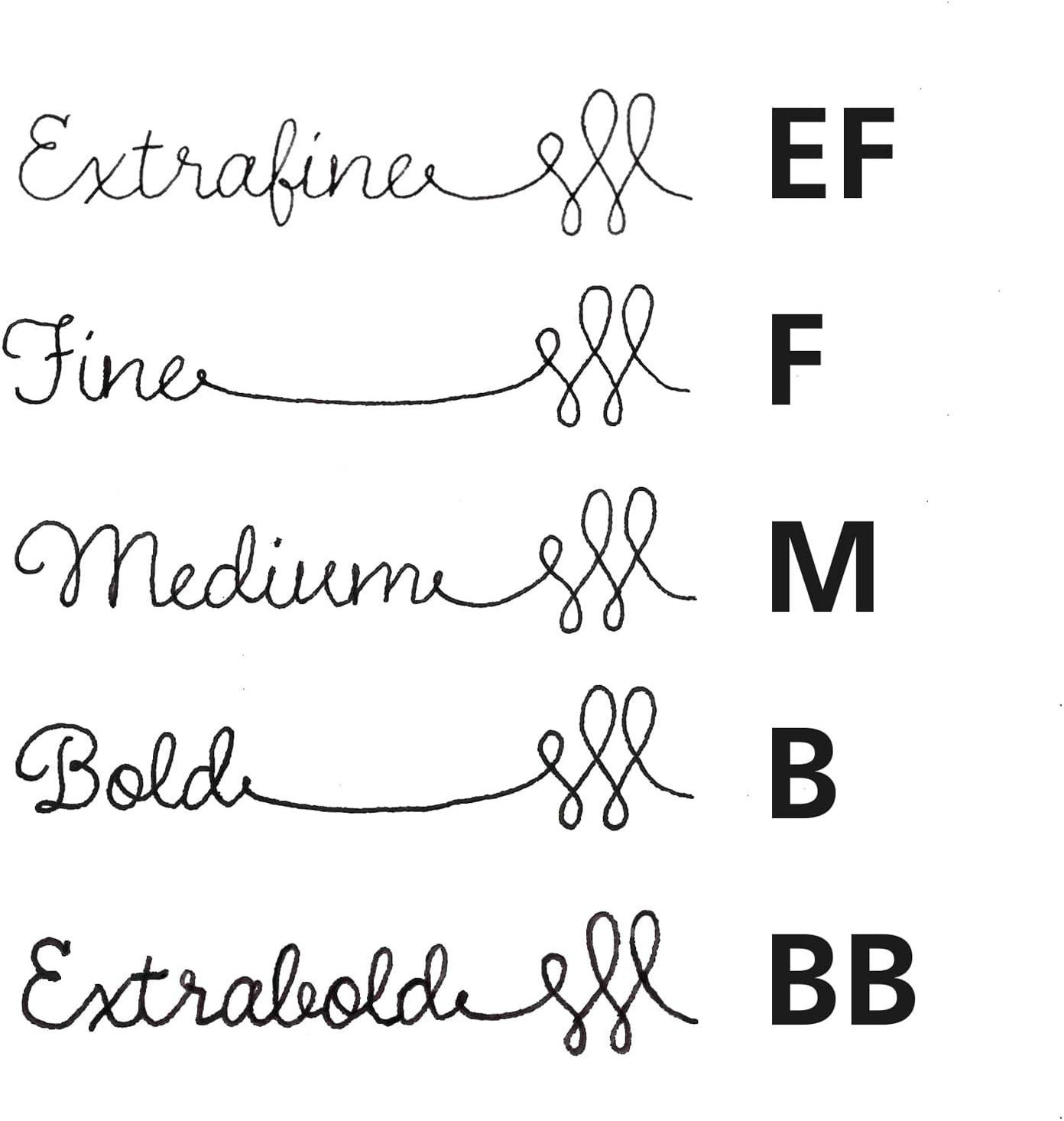 - Lo spessore della penna stilografica è a scelta del menu sotto: 0,5 Extra fine; 0,7 Fine; 0.9 Media; 1.1 Ampia.