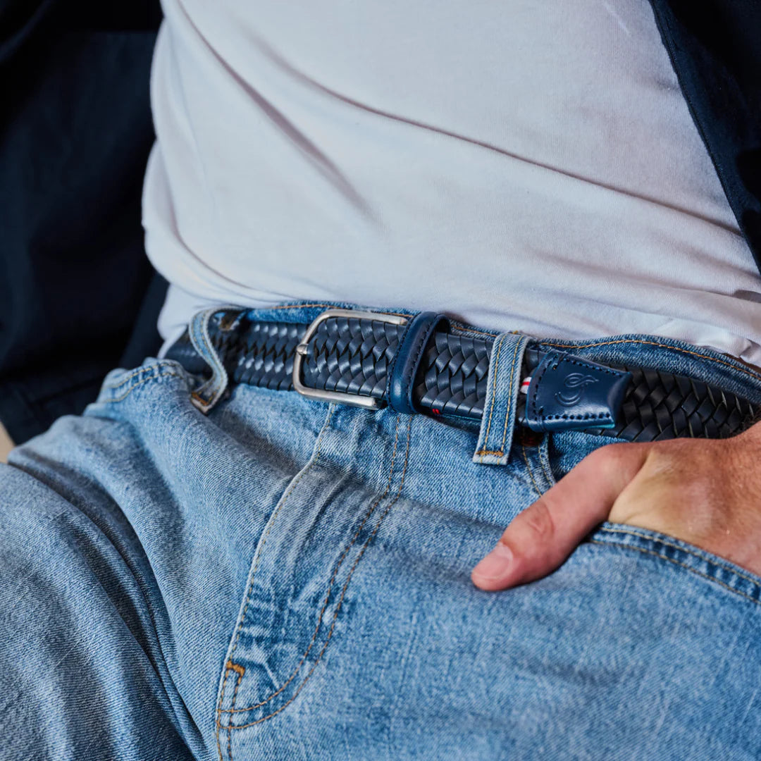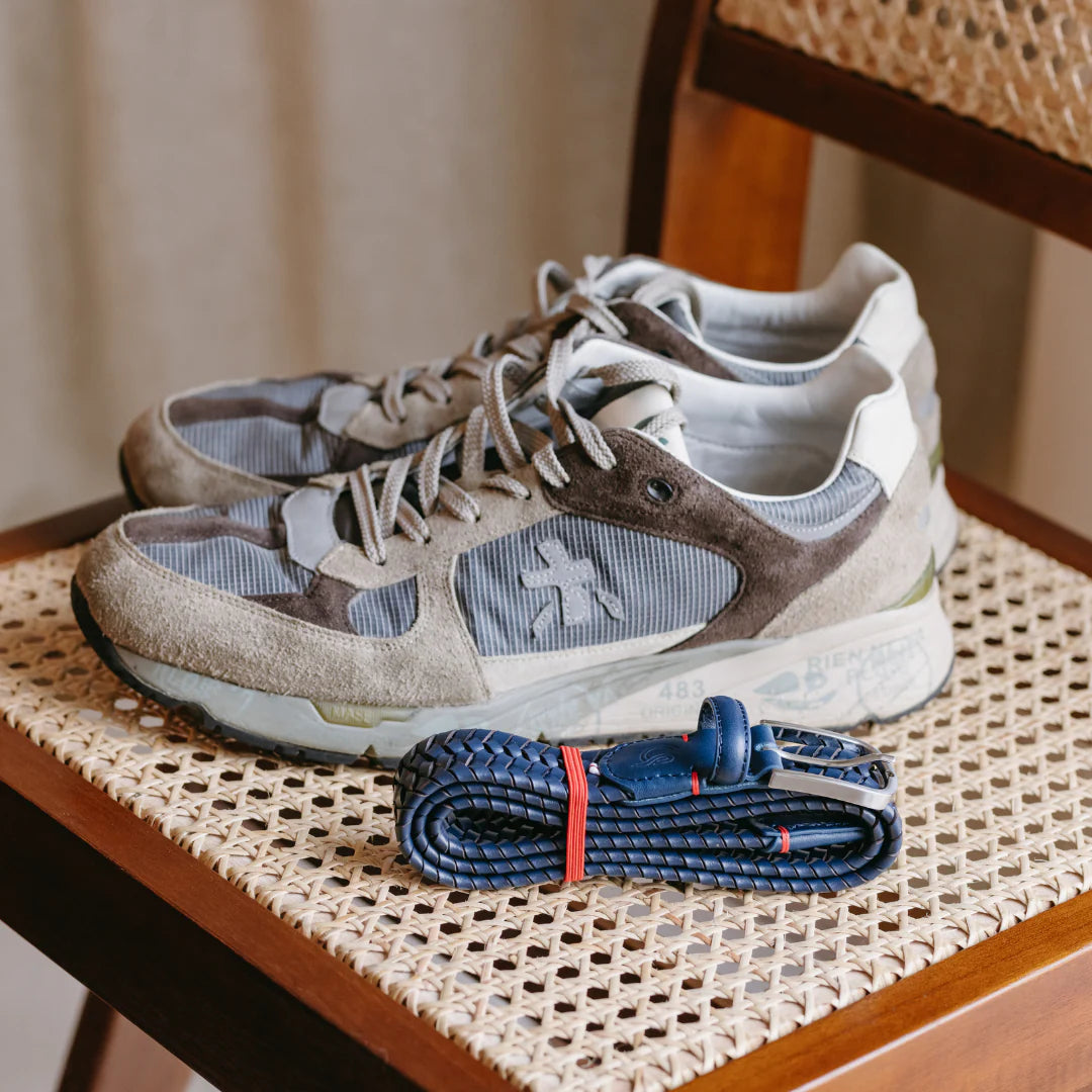 La Boucle cintura intrecciata pelle italiana intarsiata premium box regalo Pisa blu