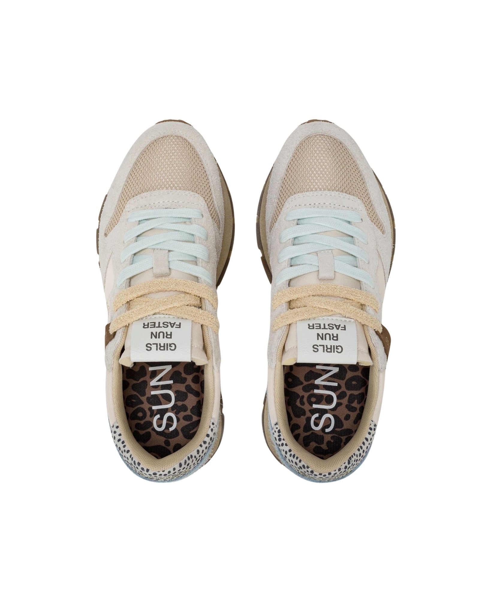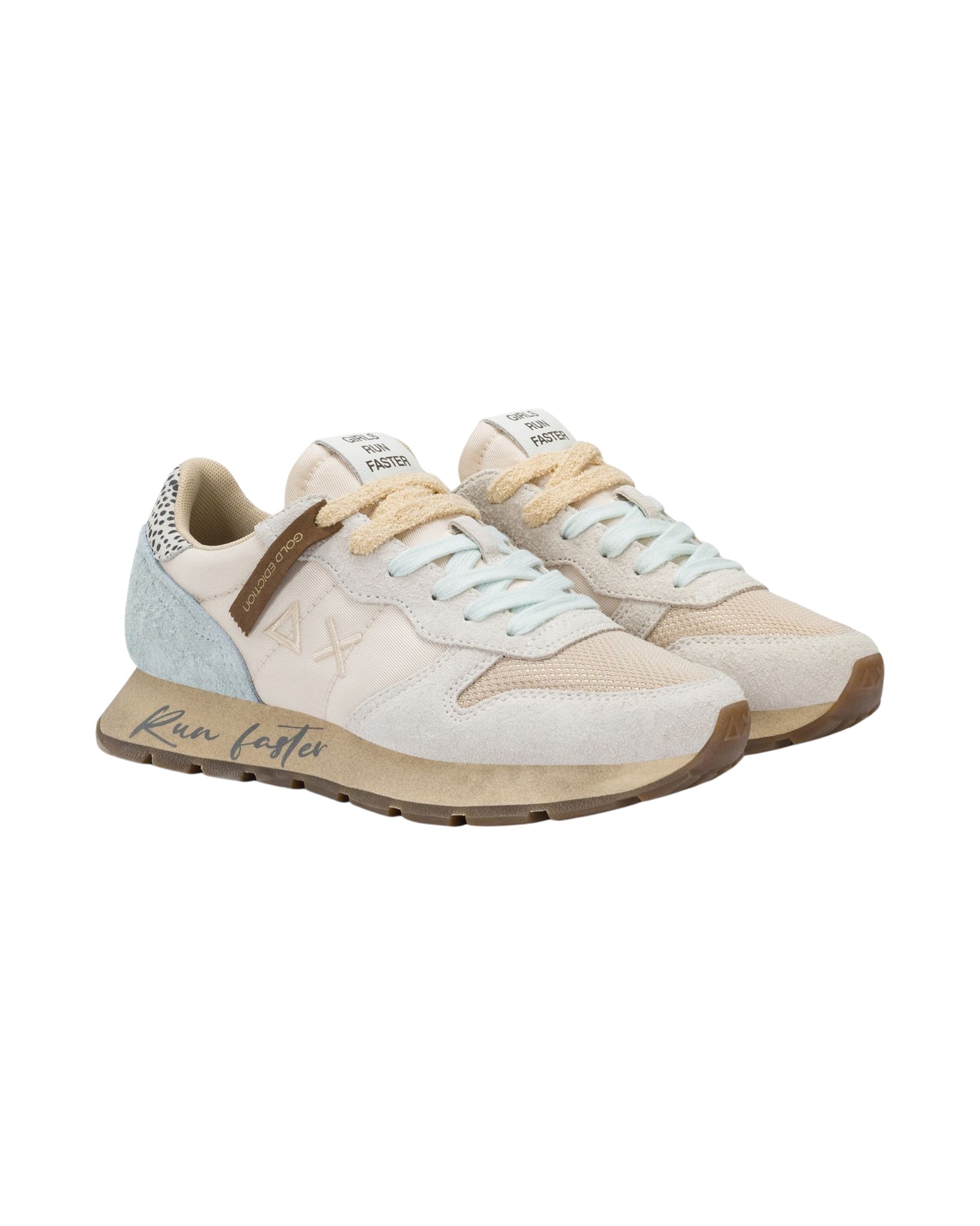 Sun68 Sneaker Casual Ally Vintage Pelle Tessuto Bianco Beige Azzurro Donna