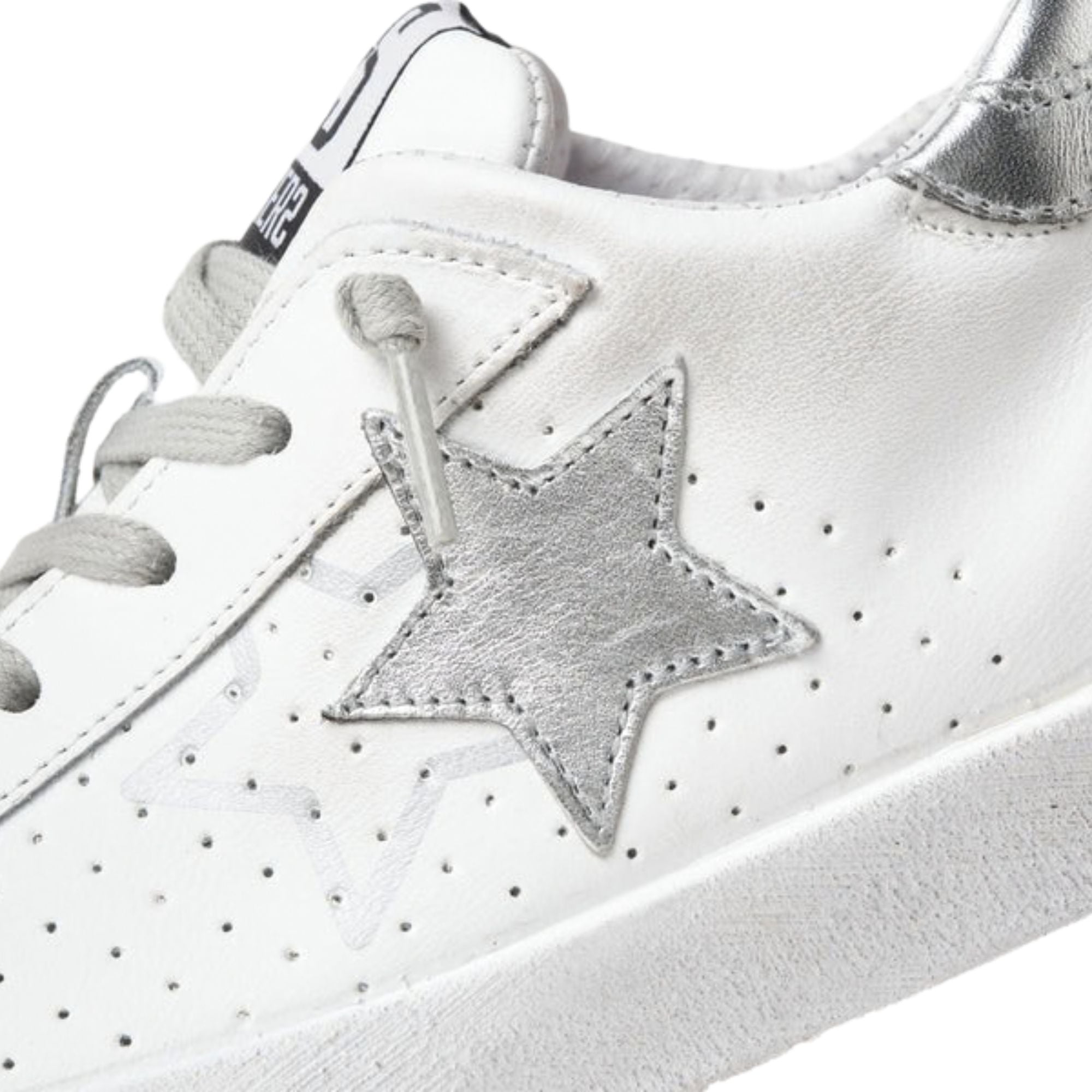 2Star Scarpe Sneakers Made in Italy artigianali One Star Pelle Bianco con Glitter Argento 2SD5103