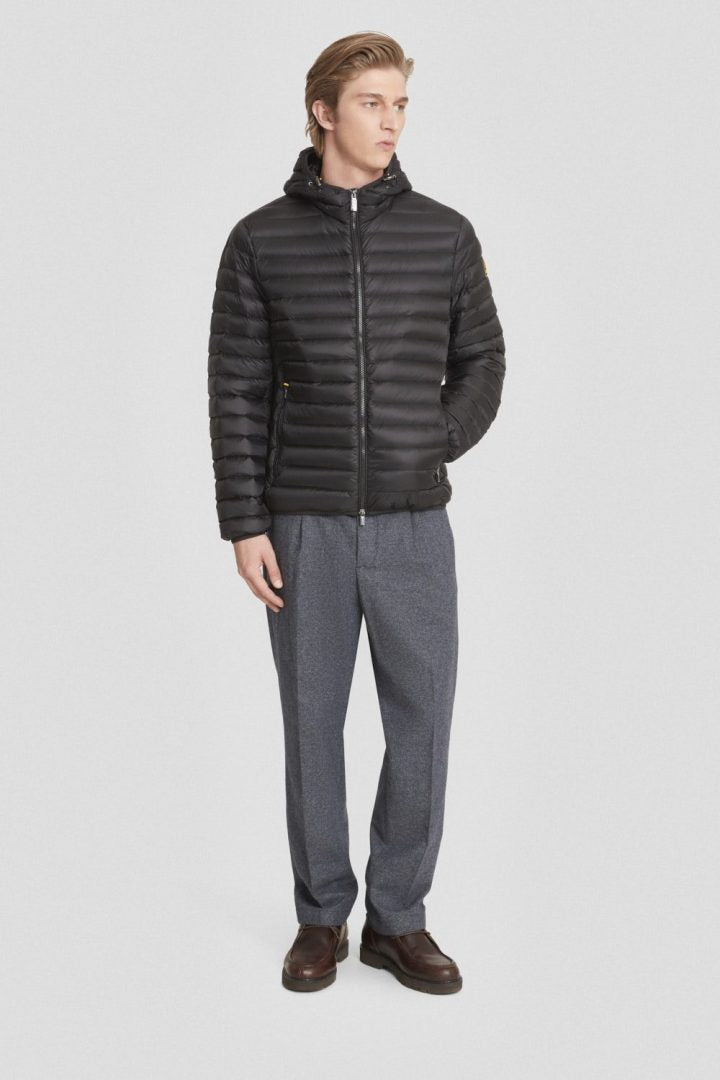 Piumino leggero uomo 100 grammi nero dal design essenziale e trasversale, con cappuccio fisso, due tasche laterali e trapunta a spina di pesce sui fianchi per una migliore vestibilità. Realizzato in nylon leggero, offre protezione nelle mezze stagioni e leggerezza quotidiana. L’imbottitura in piuma assicura un eccellente rapporto calore-peso, garantendo comfort termico e funzionalità.