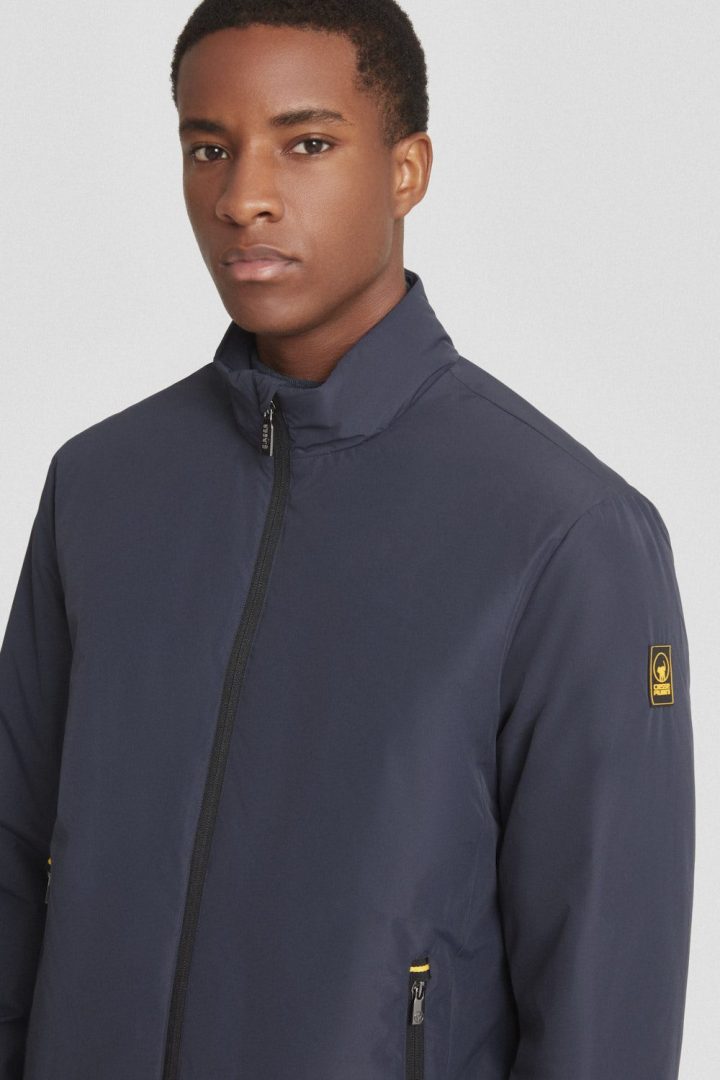 Giacca biker uomo imbottita blu, versatile e adatta a diverse stagioni.