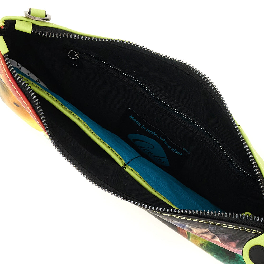 Pochette BEYONCE foderata in cotone, con tasche interne aperte e con zip e tracolla regolabile e removibile in dotazione. Bull black: l'inconfondibile Linea di Gabs che presenta il classico bottone turchese e nero, le cuciture nere e logo nero.