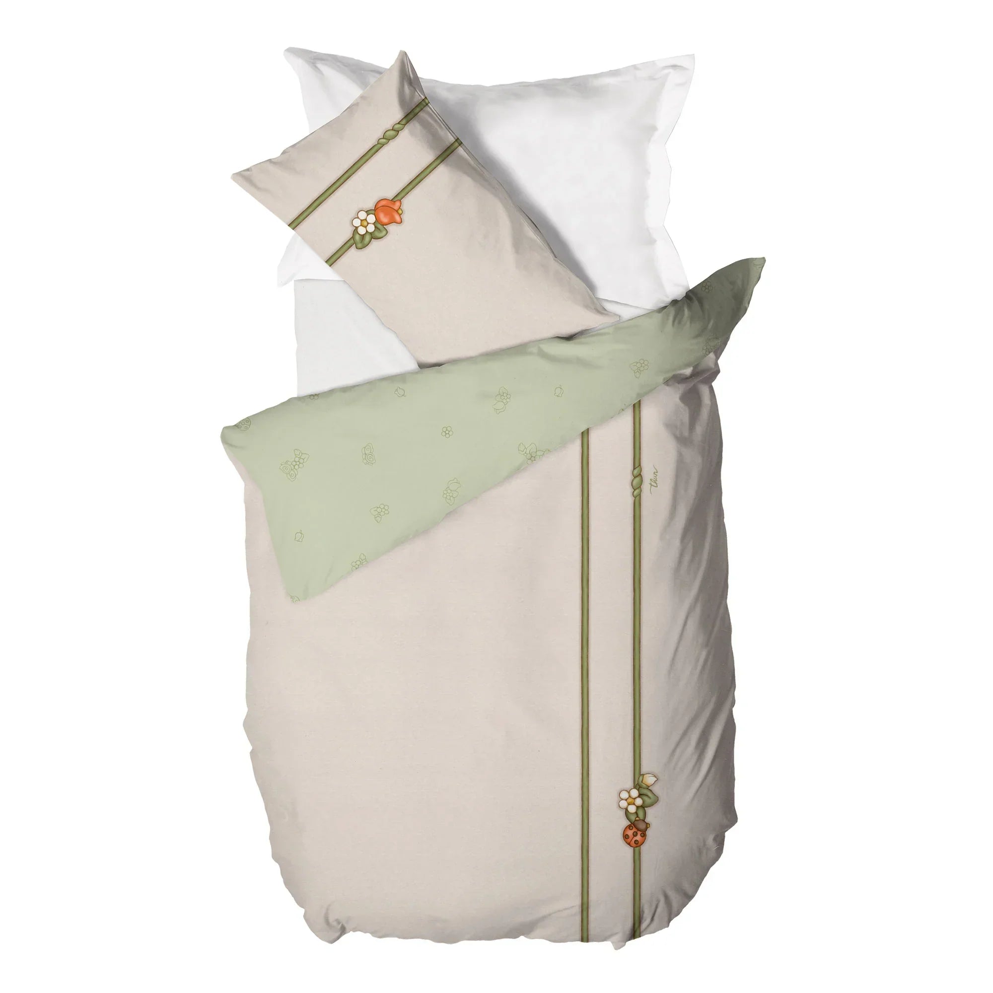 THUN Parure Set letto Copripiumino Singolo in Cotone Country Bloom Beige