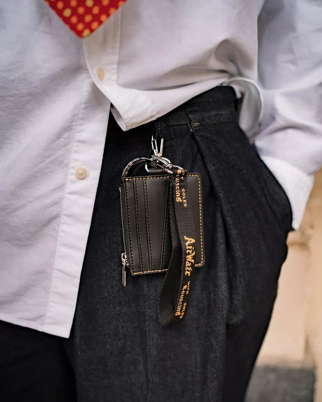 A grande richiesta, torna il porta-tessere che unisce estetica e praticità. Con 3 taschini frontali per le carte, portamonete, portachiavi ad anello e una corda rimovibile per legarlo al polso. Un porta-tessere in pelle Kiev nera e decorato con dettagli argentati, tra cui logo Dr. Martens sul retro.