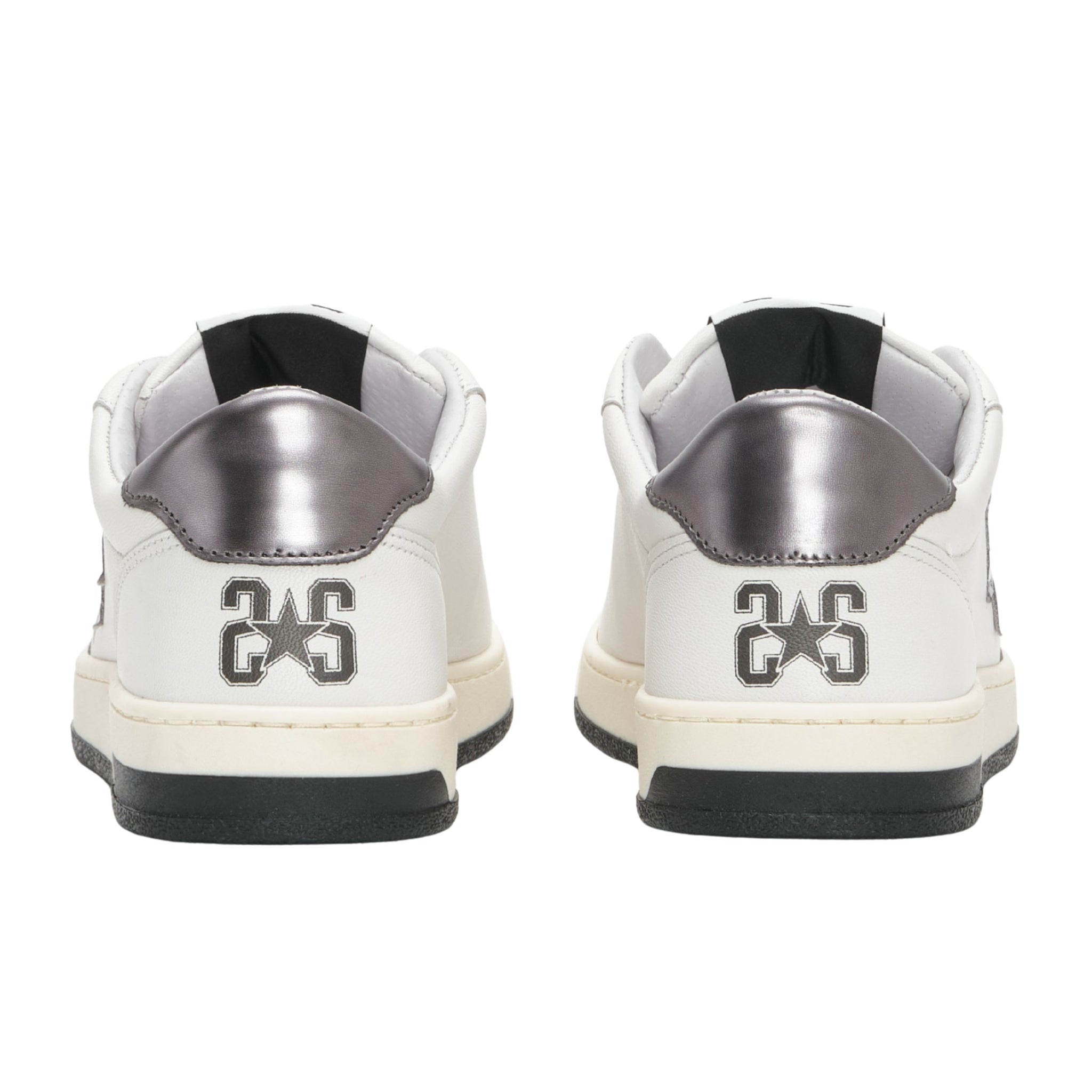 2Star Scarpe Sneakers Made in Italy artigianali Now Star Pelle Argento Bianco 4813