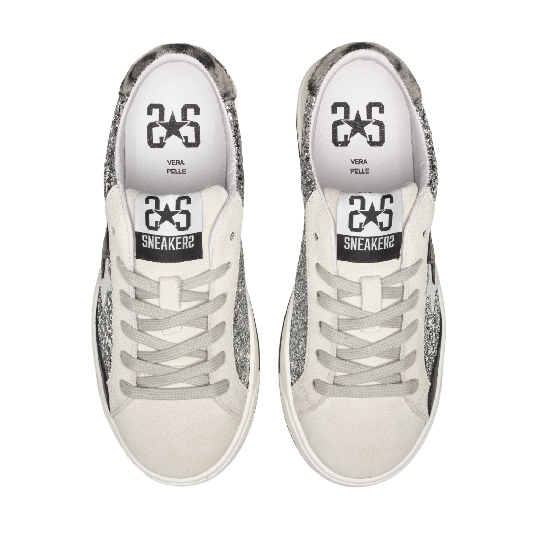 2Star Scarpe Sneakers Made in Italy artigianali Now Star Pelle Argento Bianco leo 4818