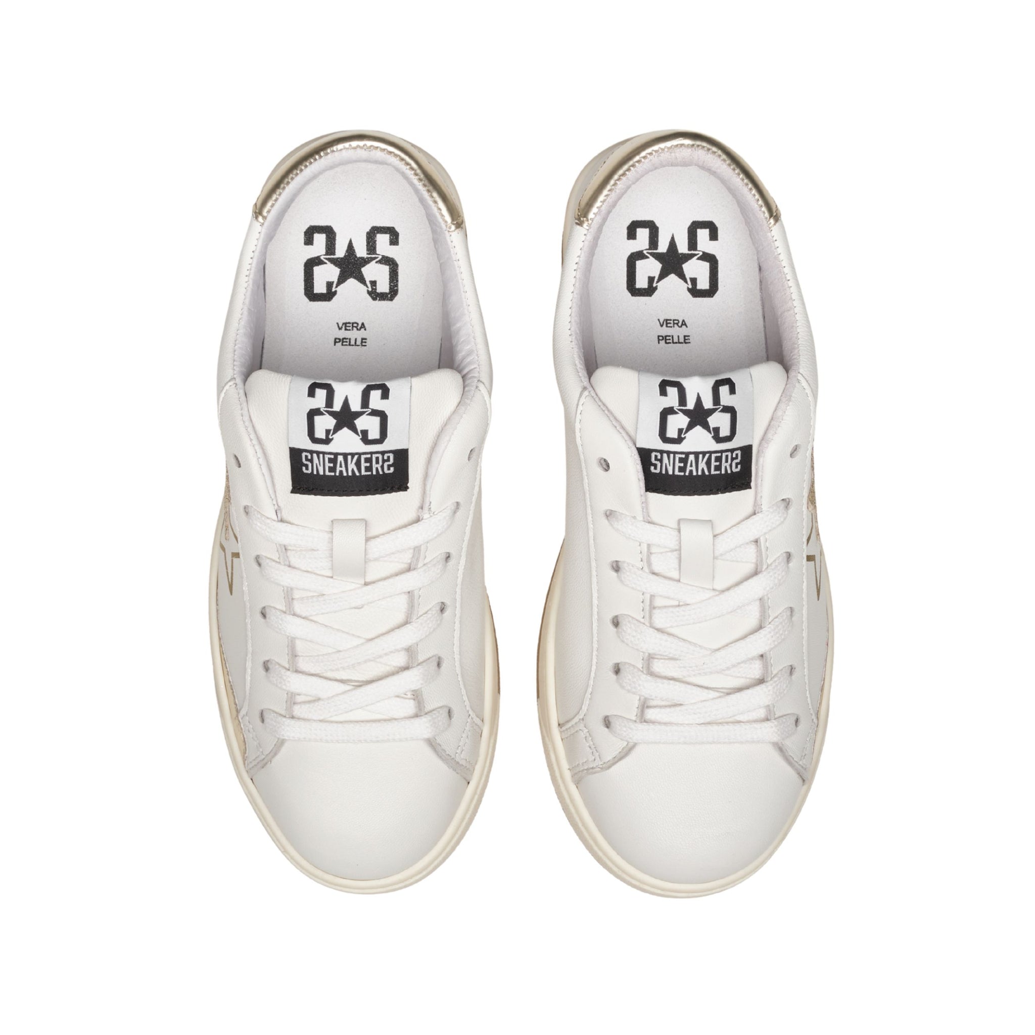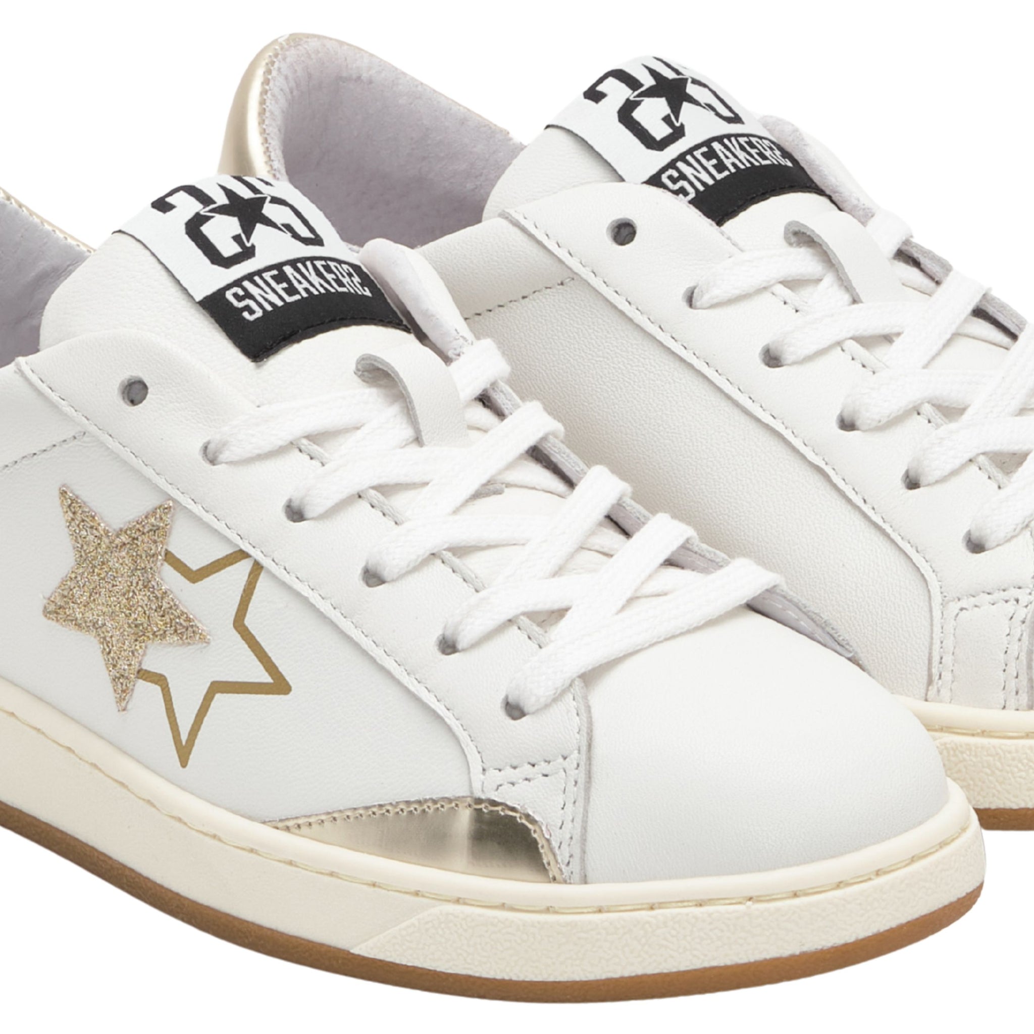 2Star Scarpe Sneakers Made in Italy artigianali Now Star Pelle Oro Bianco 4814