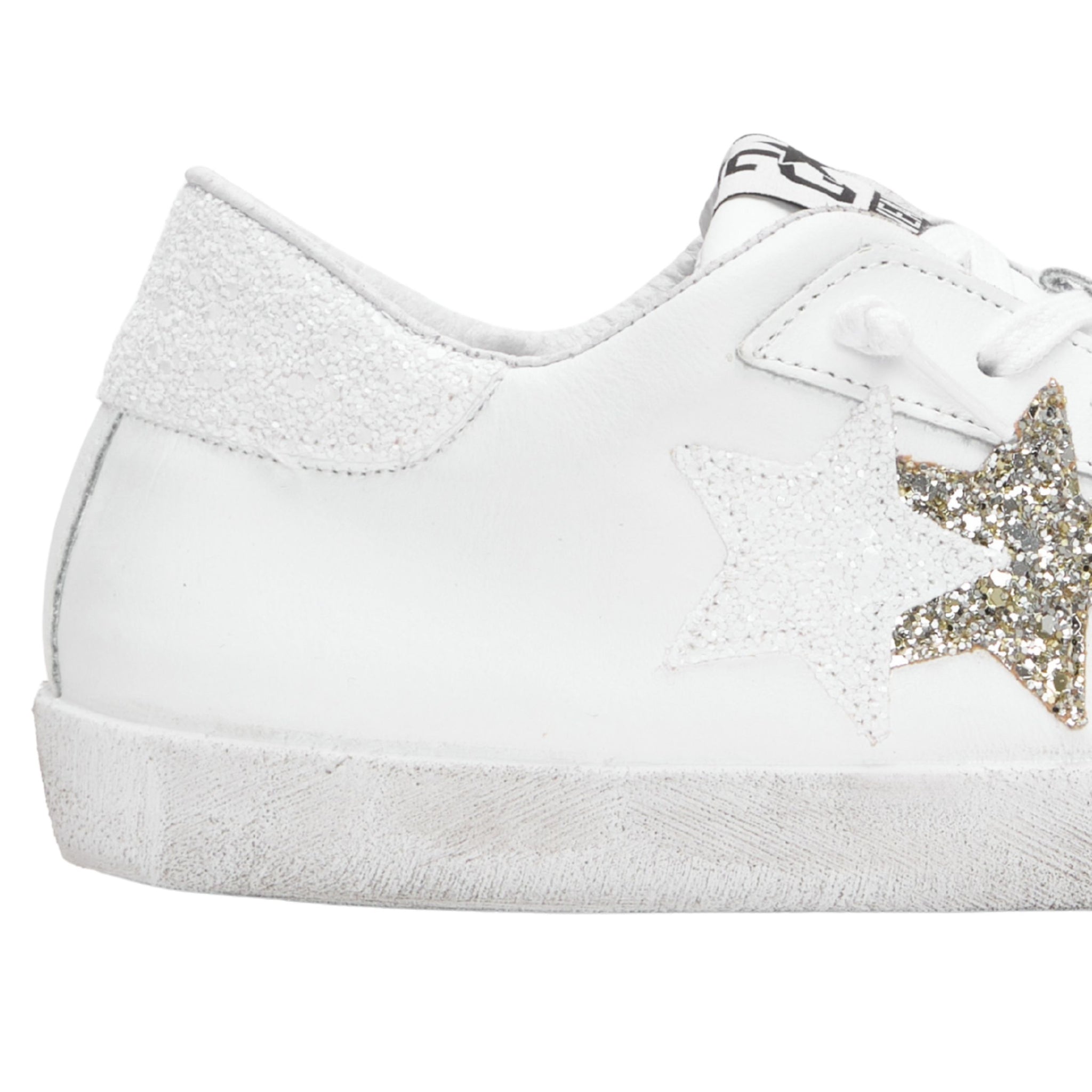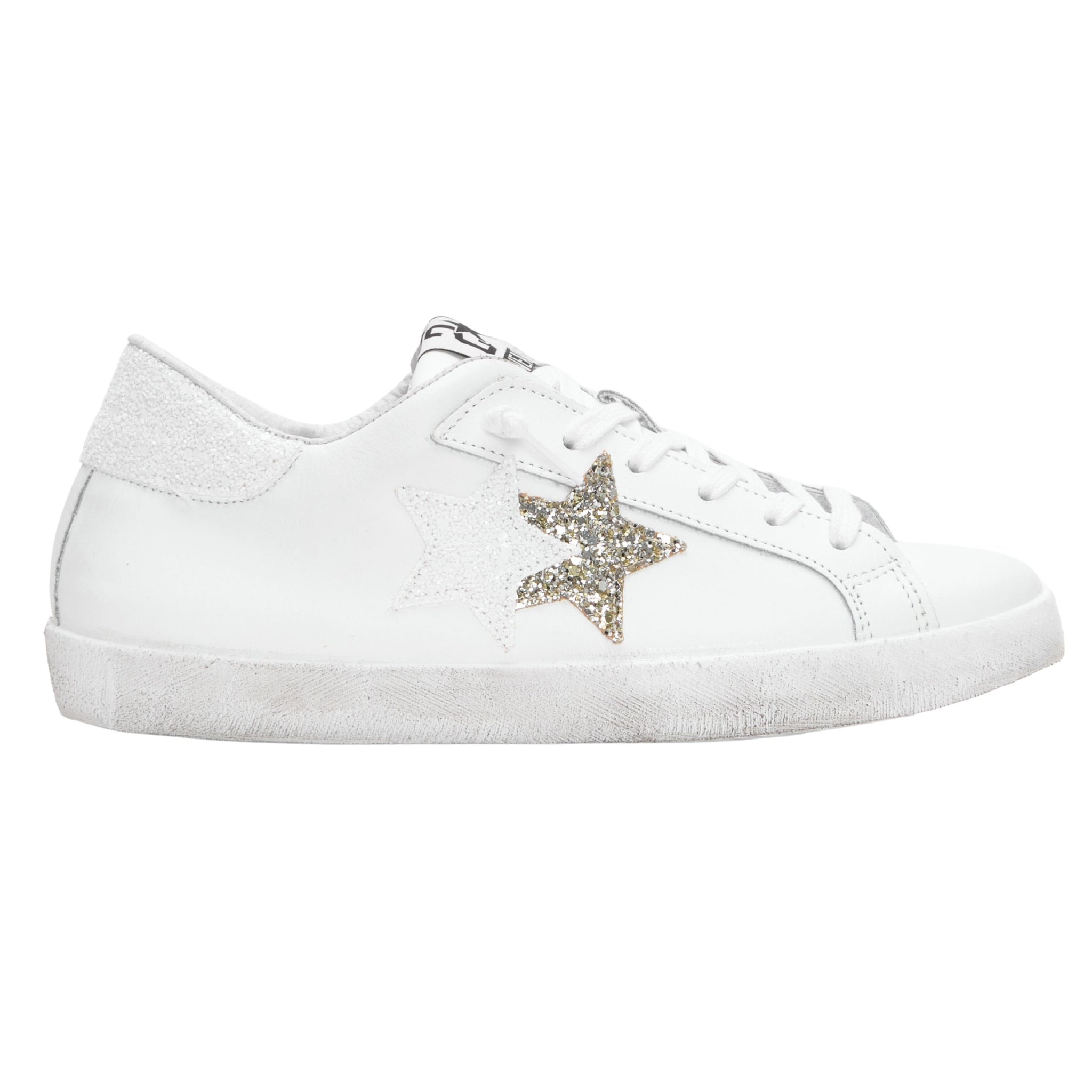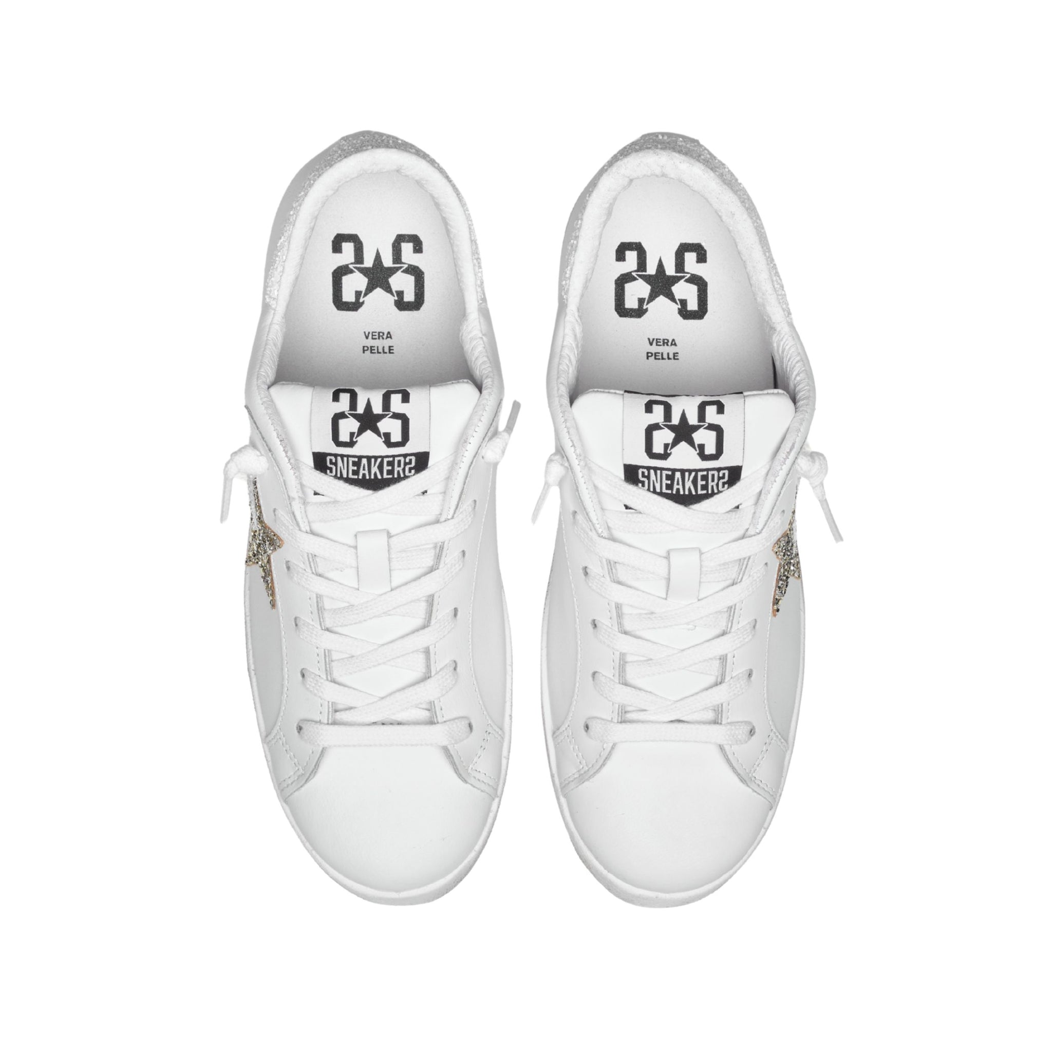 2Star Scarpe Sneakers Made in Italy artigianali PRIME STAR Pelle donna Bianco argento