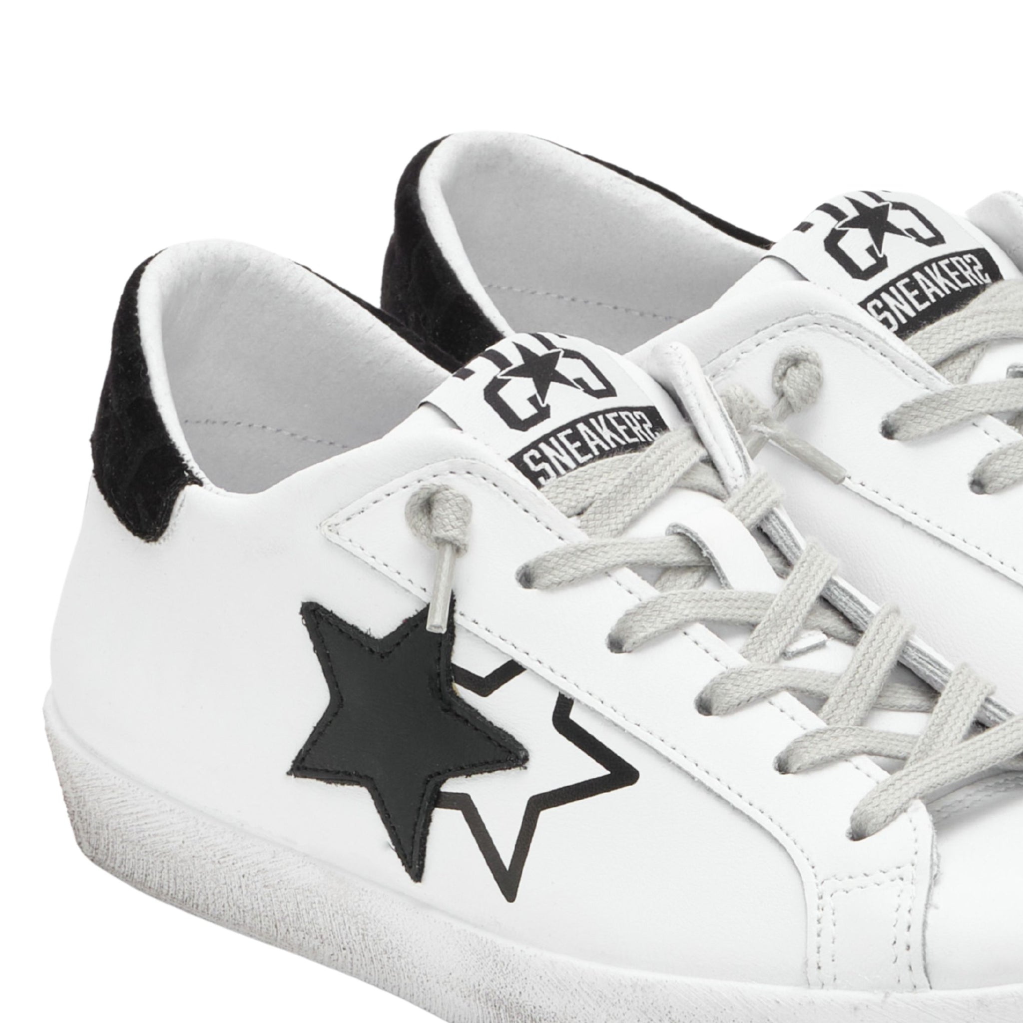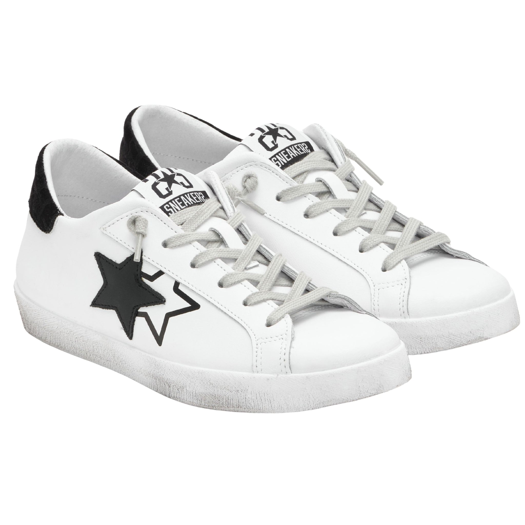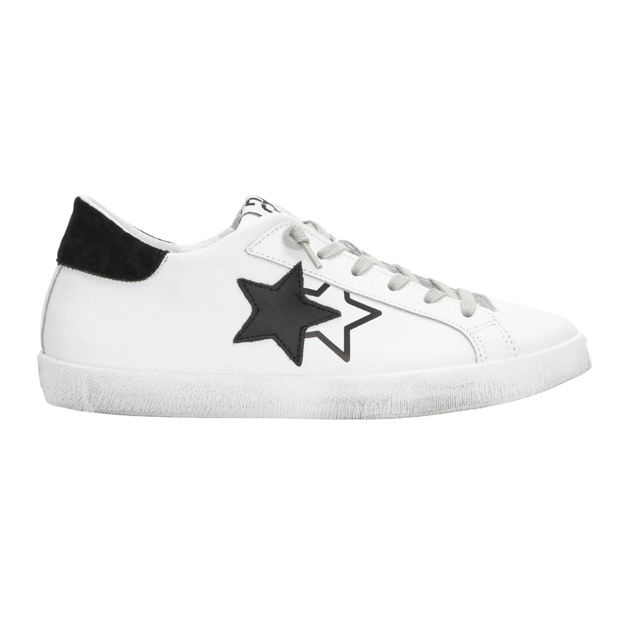 2Star Scarpe Sneakers Made in Italy artigianali PRIME STAR Pelle donna Bianco Nero