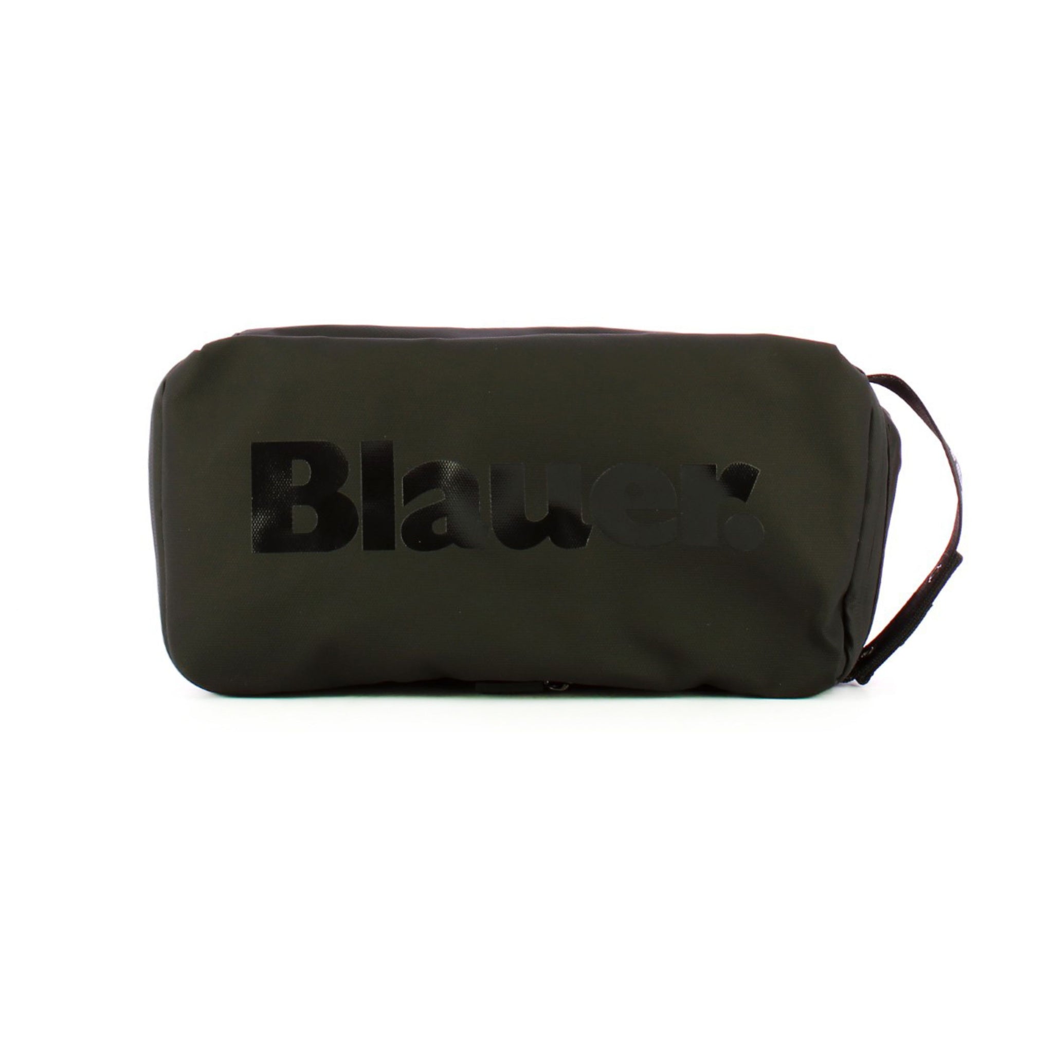 Beauty Case Union03 Blauer, essenziale e funzionale accessorio in tessuto sintetico, con logo frontale e manichetto laterale. Comparto con chiusura con cerniera, interno foderato e completo di tasche.