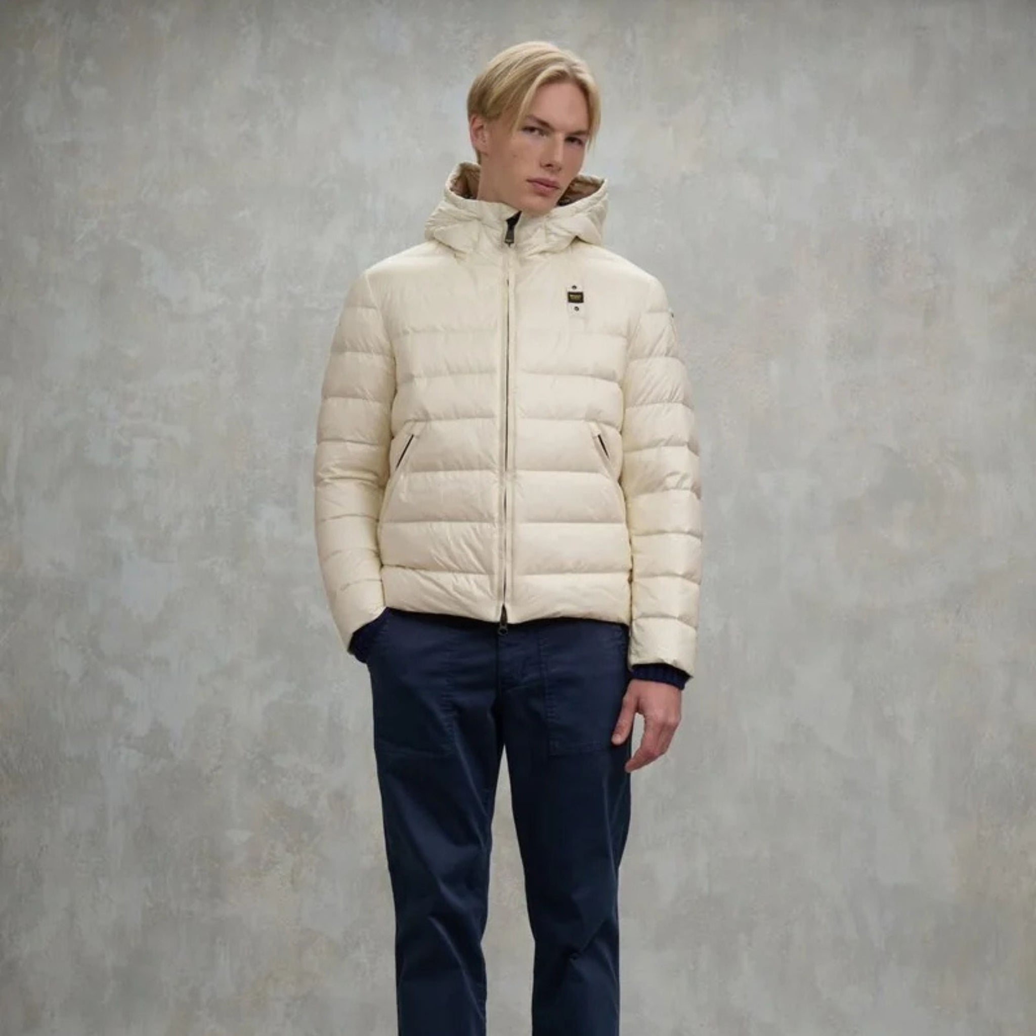 Blauer Giubbotto Piumino Corto Imbottito Acton Bianco Interno Beige Uomo