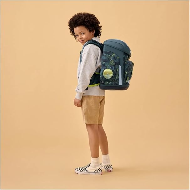 - Set da 5 pezzi: zaino ergonomico per la scuola, dimensioni: 28 x 40 x 25 cm (larghezza x altezza x profondità), sacca sportiva, 5 cletties, 22 pezzi. Astuccio pieno e astuccio. Prodotto responsabilmente da 27,7 bottiglie PET riciclate.