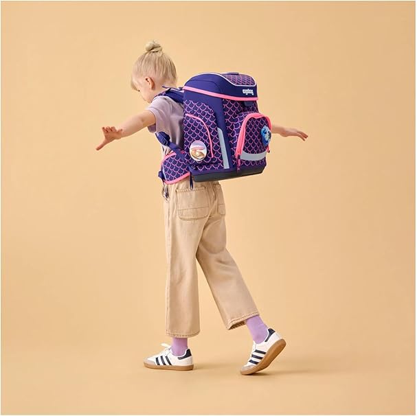 - Set da 5 pezzi: zaino ergonomico per la scuola, dimensioni: 28 x 40 x 25 cm (larghezza x altezza x profondità), sacca sportiva, 5 cletties, 22 pezzi. Astuccio pieno e astuccio. Prodotto responsabilmente da 27,7 bottiglie PET riciclate.