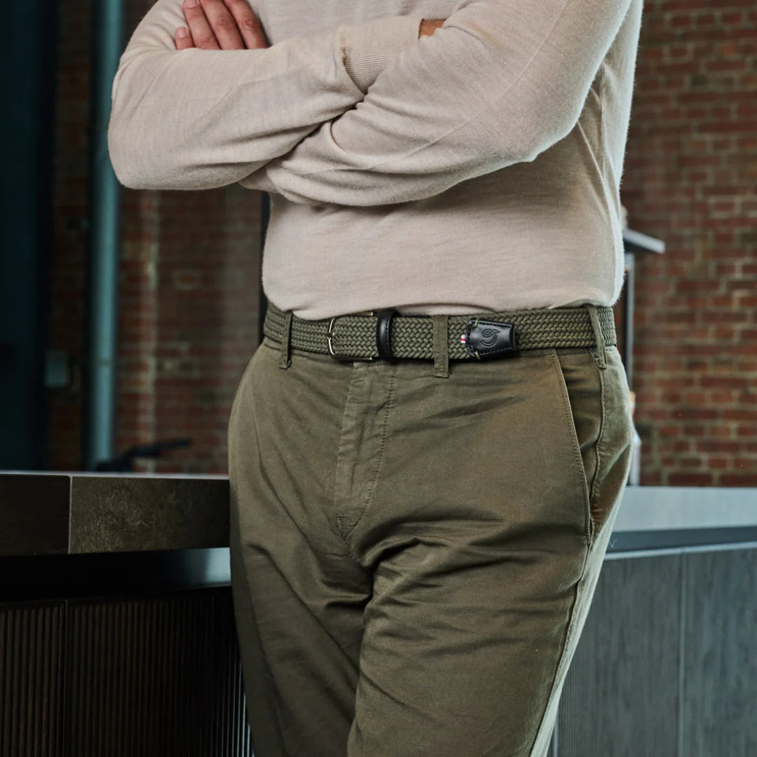 La Boucle cintura intrecciata con fibbia in metallo premium box regalo Cambridge verde militare