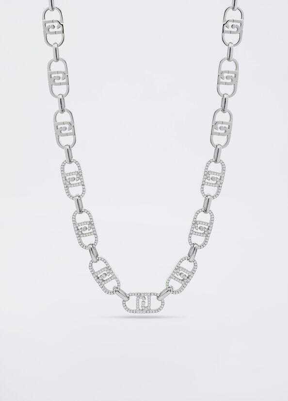 Liu Jo collana girocollo acciaio inossidabile logo e strass 45 cm LJ2621 monogram