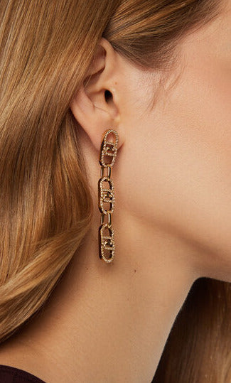 Liu Jo orecchini pendenti monogram acciaio inossidabile oro logo e zirconi LG2626