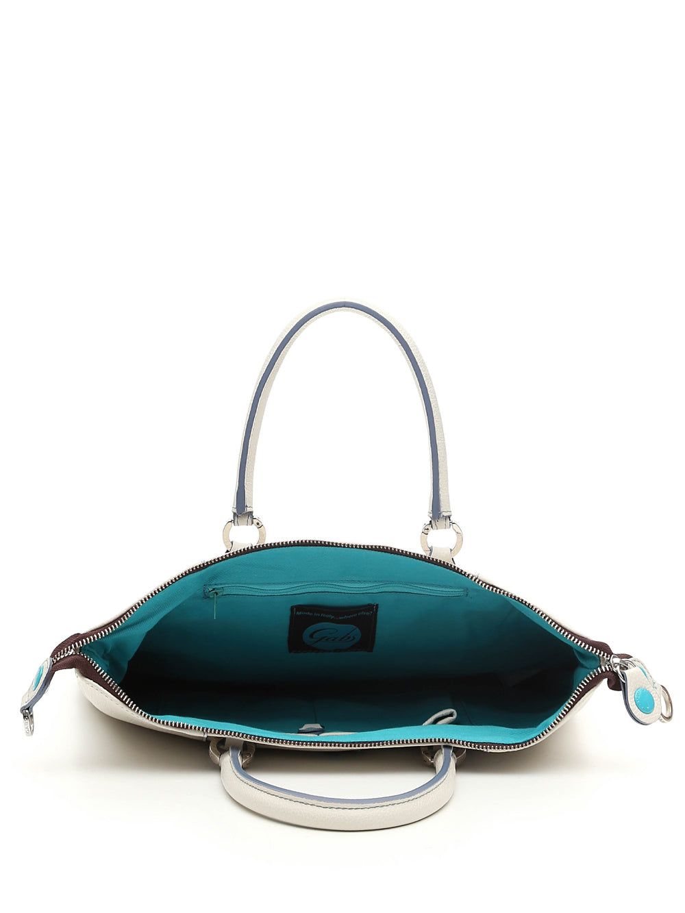 Evoluzione dell'iconica G3, la G3 PLUS presenta ancora più trasformazioni: la borsa piatta diventa una shopper, un bauletto, una monospalla e, infine, uno zaino! Con chiusura principale a zip e una tracolla a nastro regolabile e removibile, il modello è foderato in cotone, con due tasche interne a fessura e una con zip. In dotazione, inoltre, una shopping in tessuto pieghevole e un fondino in pelle logato che aiuta a mantenere la forma della borsa. L’inconfondibile linea iconica di Gabs è stata confermata. I modelli riportano il classico bottone turchese, le cuciture azzurre e la tracolla nastro in colore turchese e moro.