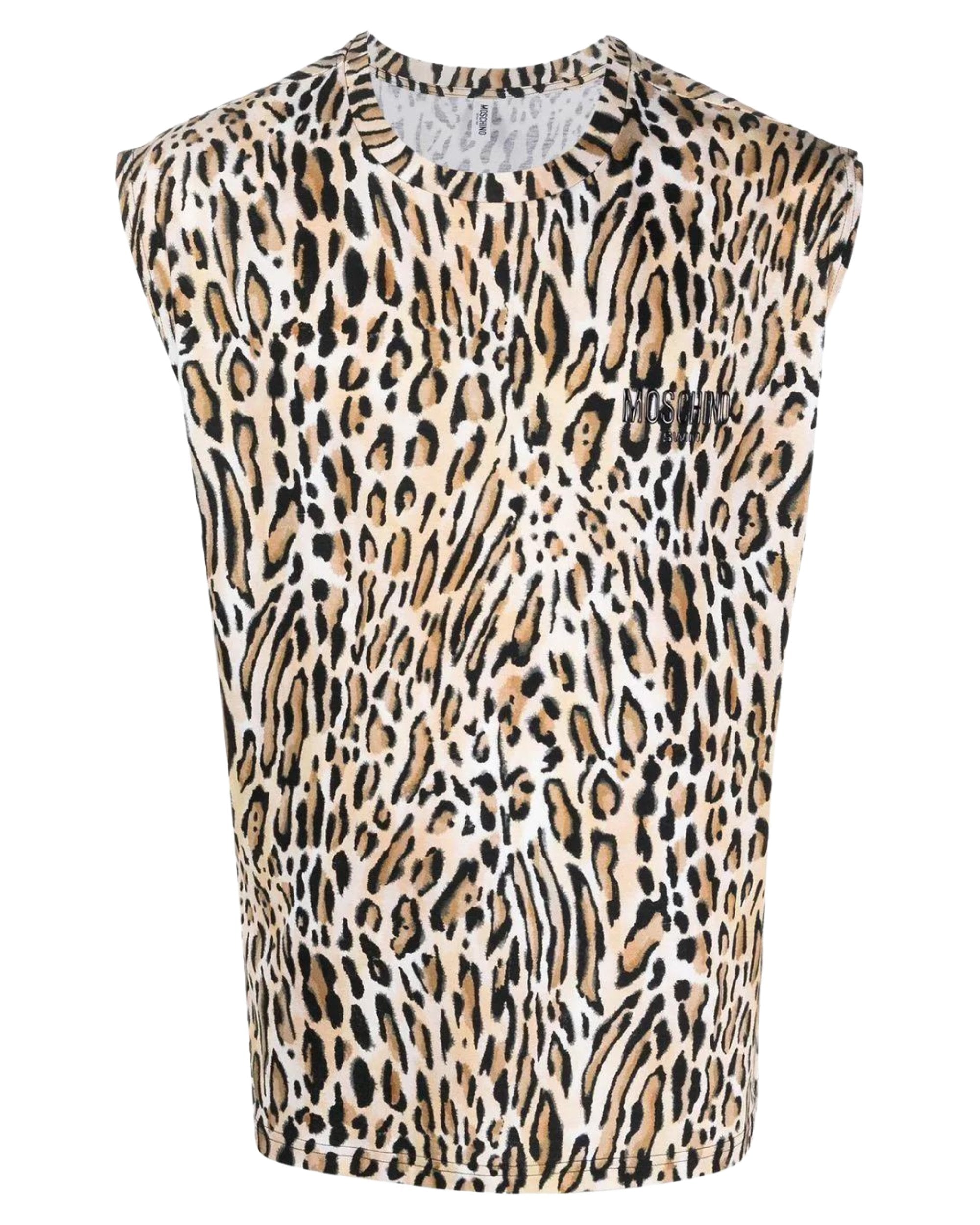 Moschino Underbear Canotta Effetto Leopardato Cotone Multicolore