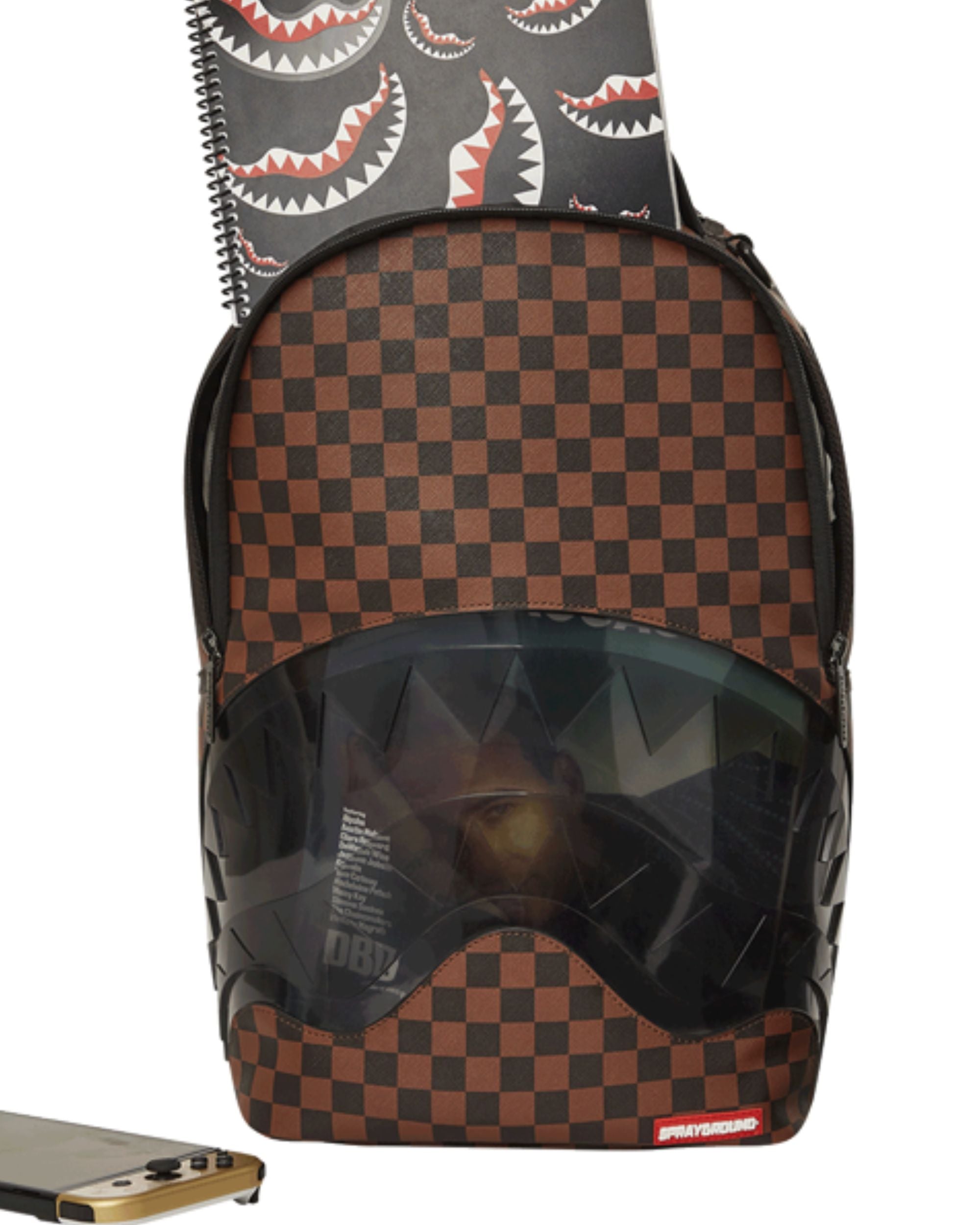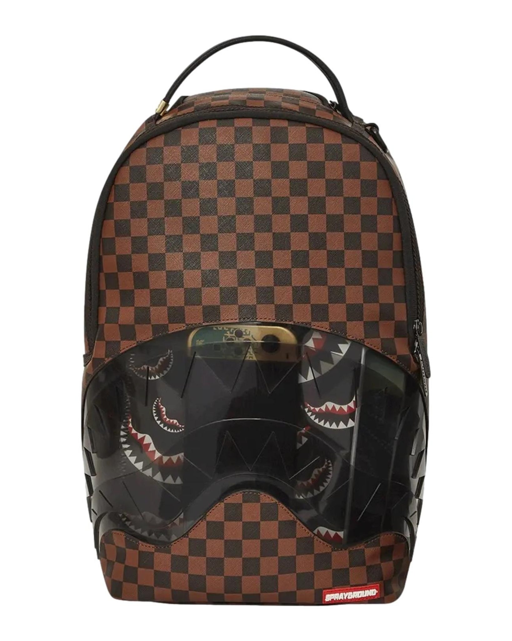 Sprayground Backpack Scuola City Viaggio Motivo a Scacchi Marrone Unisex Morso Trasparente