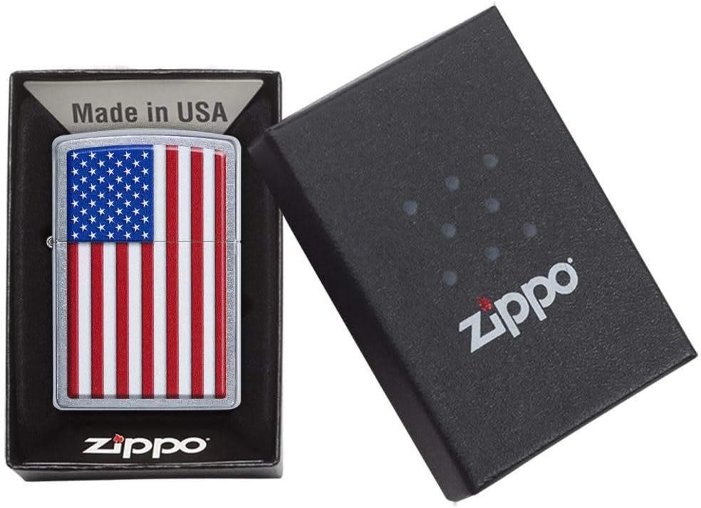 Zippo accendino Antivento Ricaricabile Made In Usa Argento FLAG